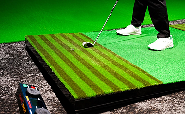 オートマットチェンジャーはフェアウェイ・ラフ・バンカーの3種類のマットがシミュレーターと連動して自動で回転し、画面内のボール地点の環境にあわせて切り替わります。